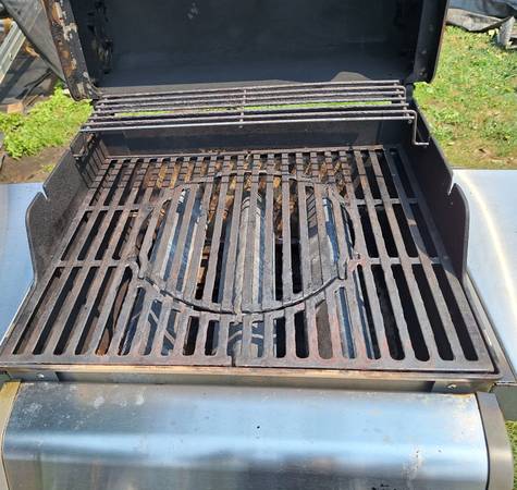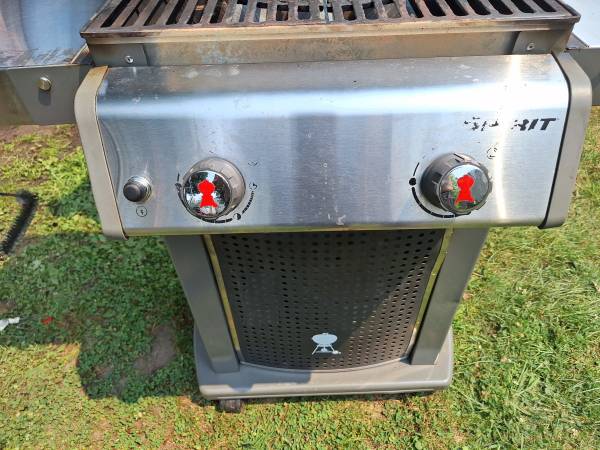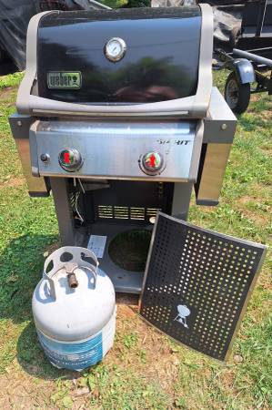 Used Weber Spirit Grill - 2 Burner barbecue grill great shape the left and right shelves fold down to take up less space nice for a small deck or apartment balcony. Has wheels to roll. Has the automatic igniter with a fresh battery works great.