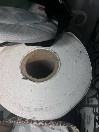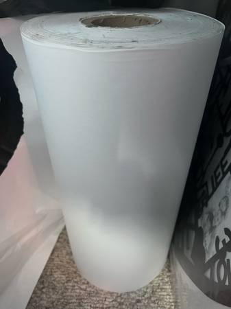 Giant raw of white paper that can be used for crafts, wrapping paper, table runner, kids drawing paper… Approximately 2 1/2 foot wide and hundreds of feet long