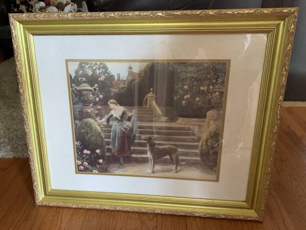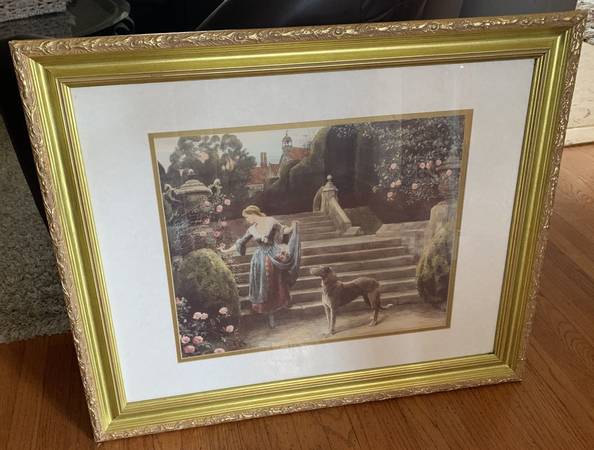 Large Gold Frame Garden Picture Beautiful garden picture - matted - fancy gold frame Very heavy It measures 27" tall - 32.5" long From a smoke free home