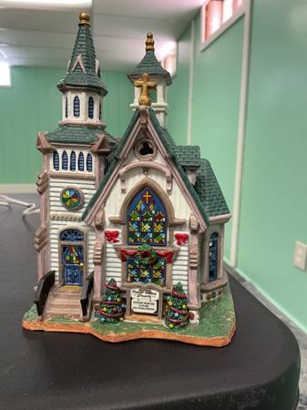 Lemax see-saw-$20.00. Lemax deer at pond-$20.00. 9 sets of assorted street lights-$25.00. 41 assorted trees-$40.00. 38 figurines and 14 decorative items-$100.00