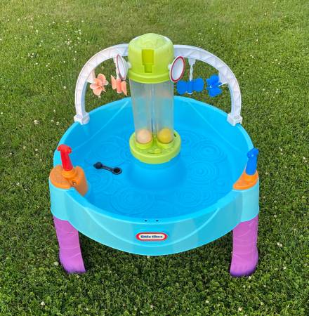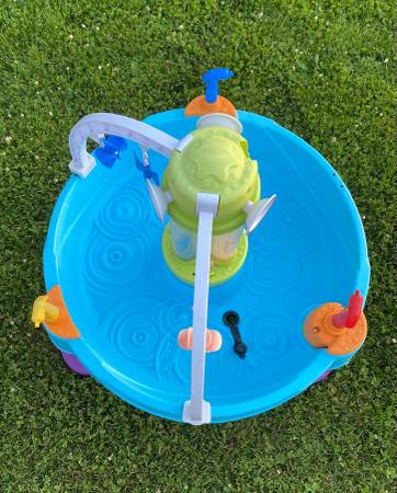 Little Tikes Fun Zone Battle Splash Water Table, Multicolored $50 Is in clean condition. Missing one white bar. “ With the Fun Zone Battle Splash Water Table, kids compete to sink each other's boats, spin the targets, fill the buckets, and spray water on one another! Each child gets their very own water shooter. Aim at the spinners or shoot the bulls-eye targets to fill the hanging buckets, which spill water into the boats below. Be the first to fill the center pillar all the way up with water to soak your friends with the water sprayer!”