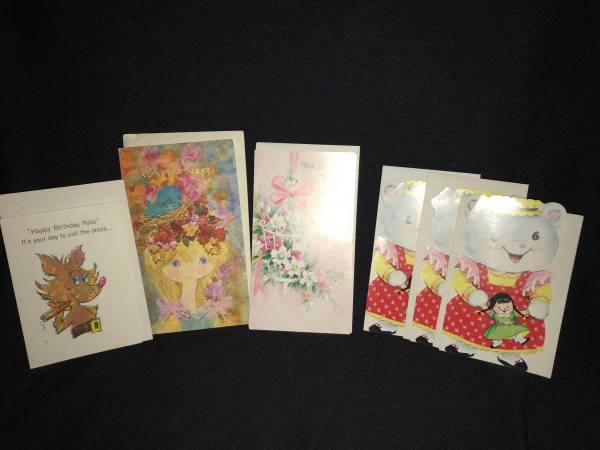 A charming assortment of 6 vintage birthday greeting cards, all new, unused, and in excellent condition. These feature classic artwork including adorable animal designs, whimsical characters, and nostalgic illustrations—perfect for collectors, crafting, scrapbooking, or giving a truly unique card!