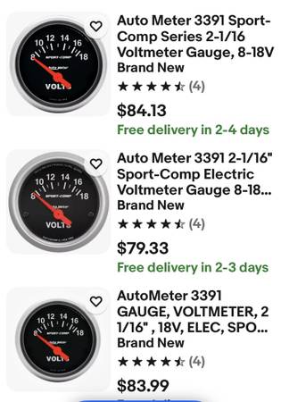 NEW! Auto Meter 3391 Sport-Comp Series 2-1/16 Voltmeter Gauge, 8-18V. SELLING FOR $55 FIRM!!!