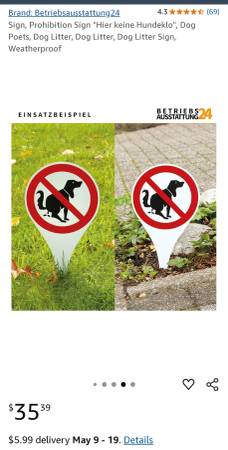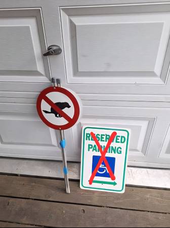 $10.00 EACH. 2 dog signs. - SOLD- 1 handicap sign. Text or call me For quick pick up anytime On Akron Street Rochester 14609.