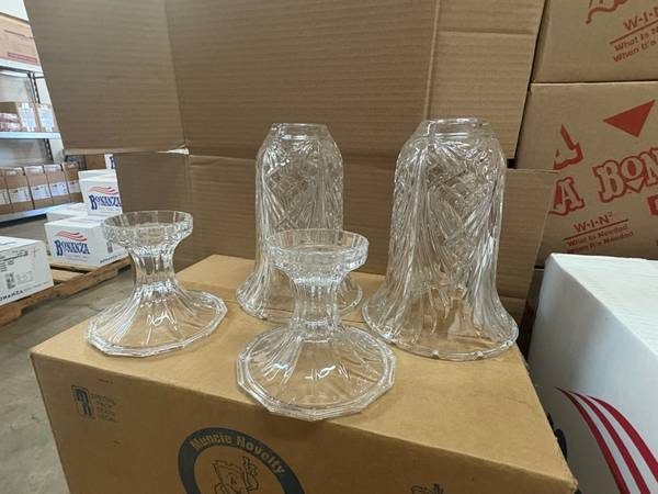 2 Piece Crystal Candle Holder Great Condition 2 Available Dimensions - 1ft Tall, 6 Inch Wide, 8 Inch Depth
