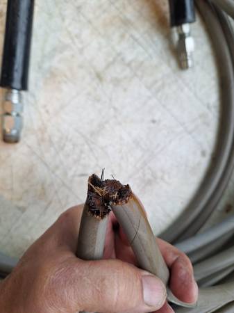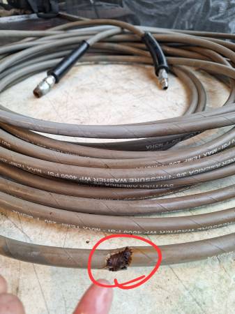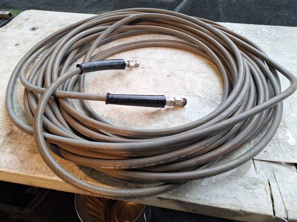 NEEDS REPAIR needs 3/8 pressure washer Union. Used 100'ft. Gray Pressure Washer Hose. 3/8", Hot or Cold rated for 4000 PSI - 250°F. Text or call me come pick up on Akron Street Rochester New York...