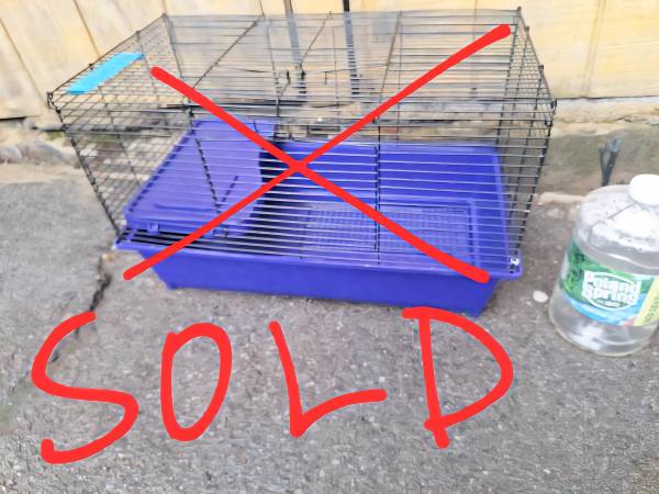 SOLD - SMALL purple cage two doors one on top one in front cage unclipse from Trey for easy cleaning comes with inside shelf.