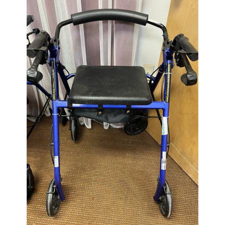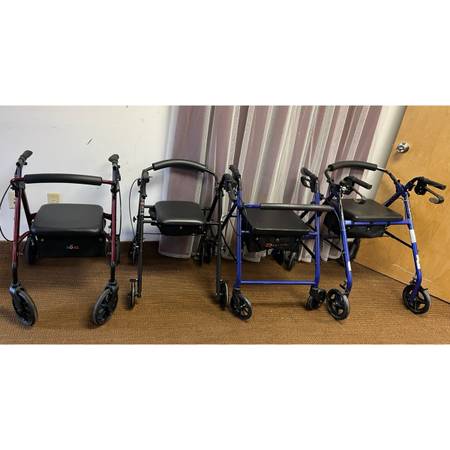(4) Rollator Walker with handbrakes, a built-in seat, smooth swivel wheels, storage. $39 each