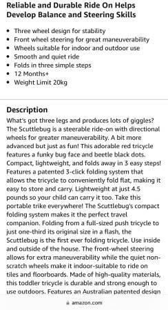 PORTABLE: Turns into the perfect travel companion. Folding from a full-sized push tricycle to just one-third its original size in a flash, you can take your child’s favorite toy everywhere!