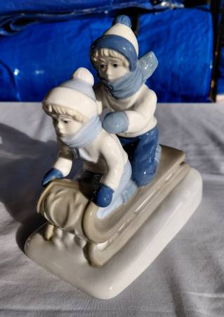 Sledding Children by Paul Sebastian in excellent condition ~ no chips, cracks, or crazing. Measures approx. 6" high and wide, 3 1/4" deep