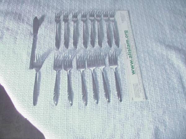 Small Forks as seen in photos. Six piece set. Eight piece set. Single fork. One butter knife. Call Dave