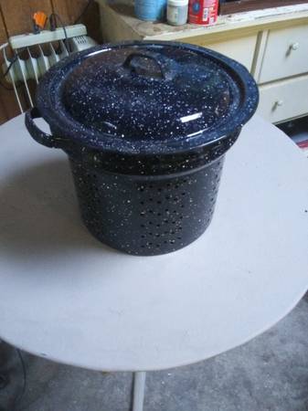 Unusual small size 9" across 8" tall With cover Strainer only - set in larger pan Little enamel wear but very useable