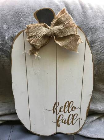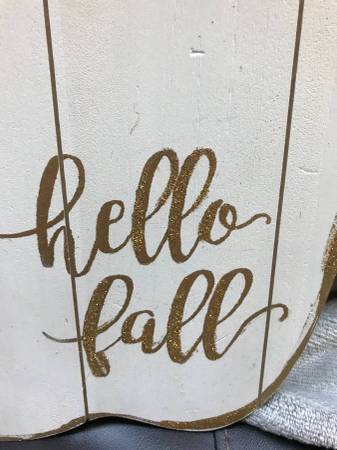 Good condition, pet free and smoke free home. Can be hung on wall or placed on table surface. Lettering is in glitter gold. Nice size: 19” tall, 11 3/4” across $15