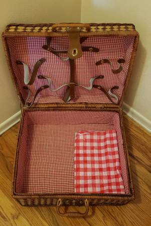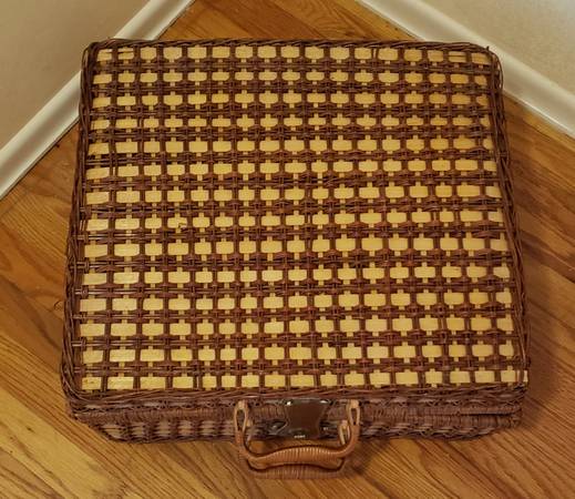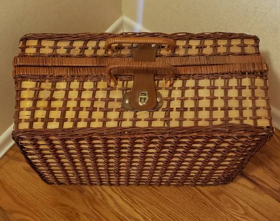 Wicker Picnic Basket with Handles and Serving Mat. Rarely used and in excellent condition. This would make a great gift for anyone that likes to picnic. Pick up in Greece. The price is firm **See my...