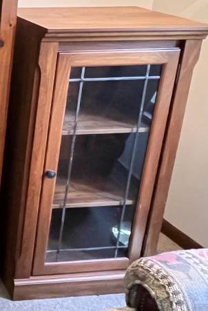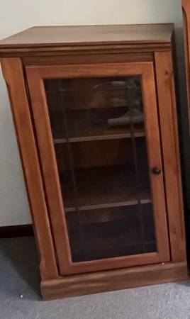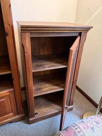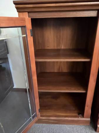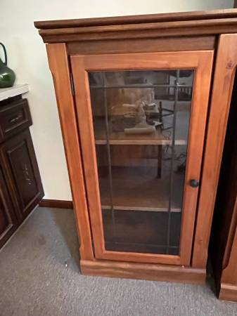 These 2 Wood Cabinet Shelves are in great condition. We would separate them and sell them each for $30. The 2 shelves each are 25" long x 19" wide x 46" high.