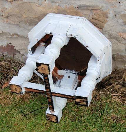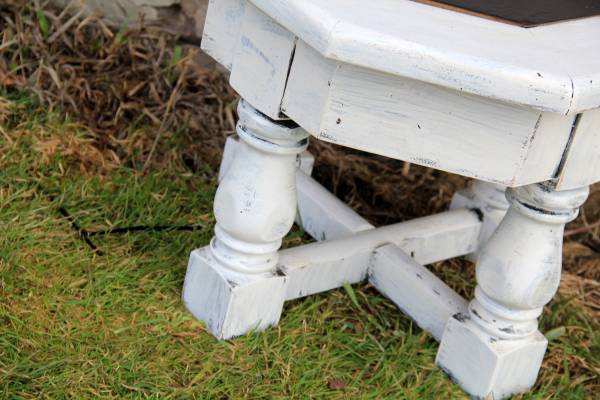Project piece! Purging! Such a cool table--Unique hexagon shape---SUPER chunky, solid, structurally a beast! But so classy too! middle piece is faux slate--and pops out for easy finish! All prepped and primed!—ready for use or Pinterest /stain it up for some eye-popping, crafty cool fun! I did the hard part---now you get to have the fun! Bazillion uses! On a project purge!****