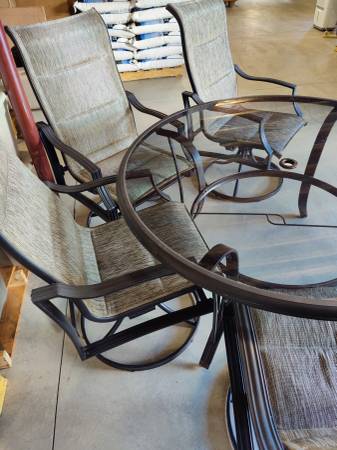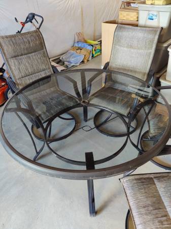 Table is 53" round with 4 swivel chairs. Like new with no rust or scratches. Stored indoors. Best offer.