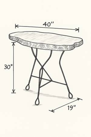 • Salvaged wrought-iron base with twisted legs and cross-braced structure