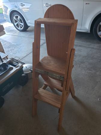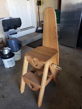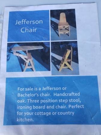 For sale is a Bachelor or Jefferson chair. Handcrafted oak. Three position step stool, ironing board and chair. Perfect for your cottage or country kitchen. $50. call 585- 2 one 7 - 2 one 5 one