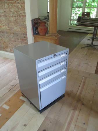 For sale is a Bisley 4 drawer file/storage cabinet in very good condition. Bisley no longer makes a 4 drawer unit. I bought it new over 30 years ago. The key seems to be missing but I'll keep searching. The black caster wheel base is $70 by itself in their current catalogue.