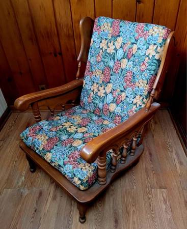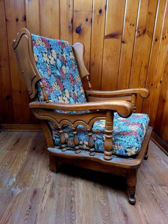 Beautiful wooden chair piece. Floral designed cushion. Cash and carry.