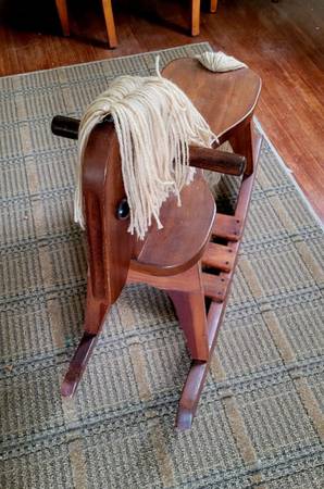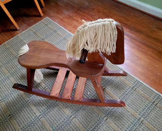 Antique adorable rocking horse. Wooden structure, yarn tail+mane. Cash and carry.