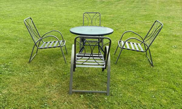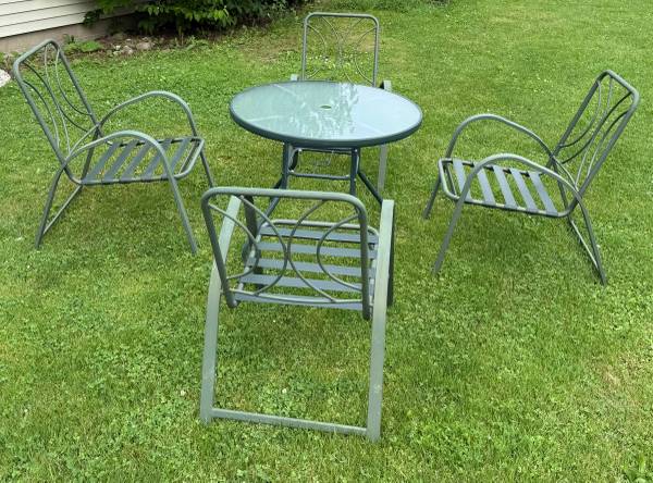 4 green aluminum outdoor chairs. Some surface marks/rust spots. $35 each if purchased separately.