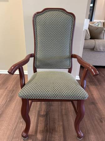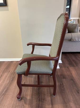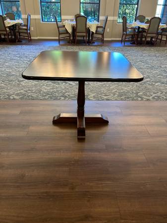 8 Square (43" diameter) and 3 oval (61"x43") dining room tables - willing to sell all or individually. 44 green patterned upholstered chairs - willing to sell with tables, or separately. Price TBD.