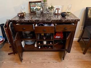 buffet to match dining room table also for sale - 50 in wide; 36 in high; 21 in deep; 3 drawers; 2 cabinets with 2 shelves - best offer will be considered - also selling dining table that matches