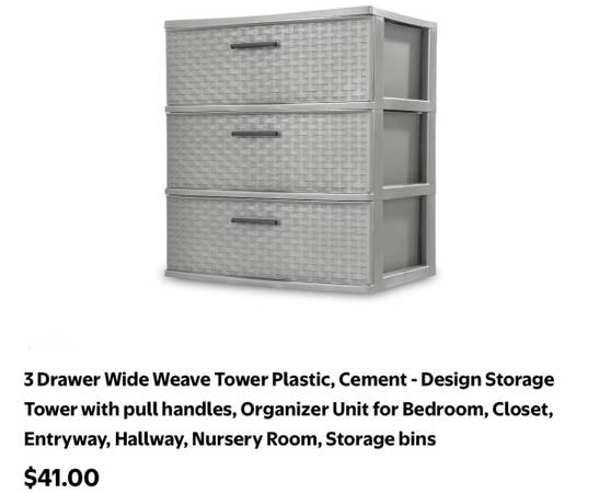 3 Drawer Plastic Storage Drawers, Gray. Storage Bin Unit