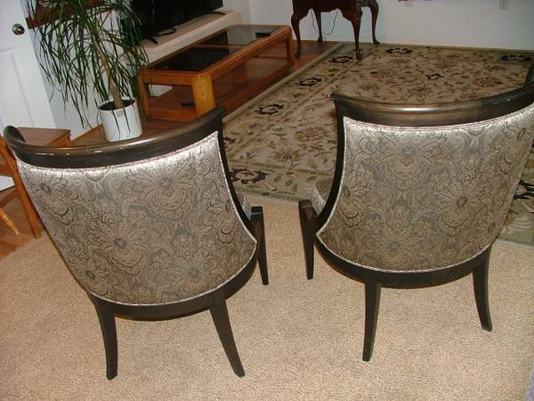 2 Pristine Uphostered chairs with bumpers Made 3/28/00, been wrapped in storage. Supurb design. Paid over $1650 each. NOW $299 both REDUCED!! Call