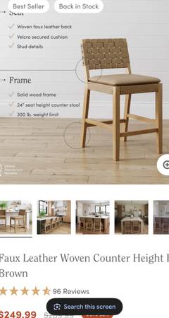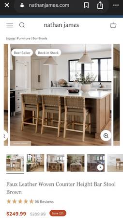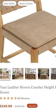 1 Faux Leather Woven Counter Height Bar Stool Brown, Nathan James.