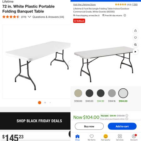 Lifetime 72” White Plastic Portable Folding Banquet Table. 6’ Folding Table Indoor Outdoor Commercial Grade