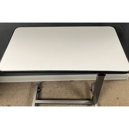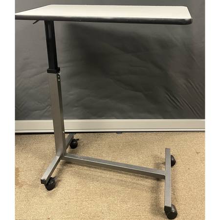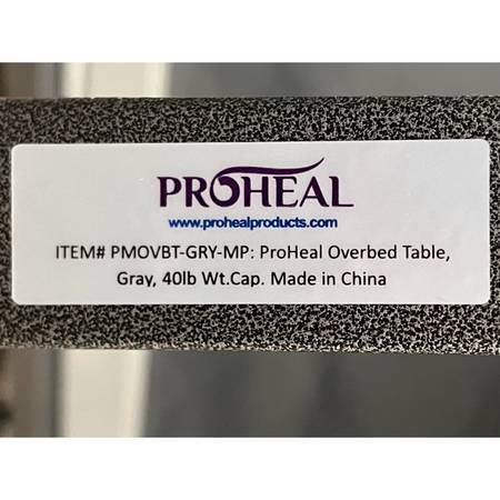 Non Tilt Overbed Table on wheels, adjustable height. ProHeal PMOVBT-GRY-MP
