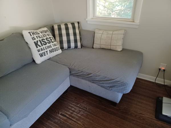 Gray 3 piece sectional for sale. 5 years old. No tears, rips or stains. Price includes slip covers. Will have everything before purchased. Very comfortable.
