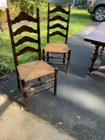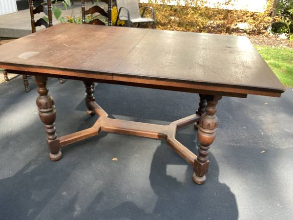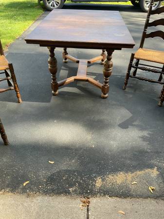 Antique table and 4 chairs. Table is 60 x 40 expandable to 76 x 40. Very heavy.