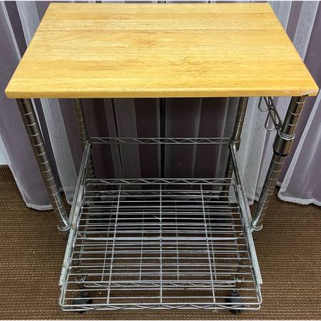 3 Tier Kitchen Carts on Wheels Utility Cart. Microwave Cart, Adjustable Shelves Chrome/Wood