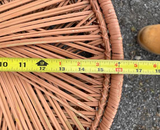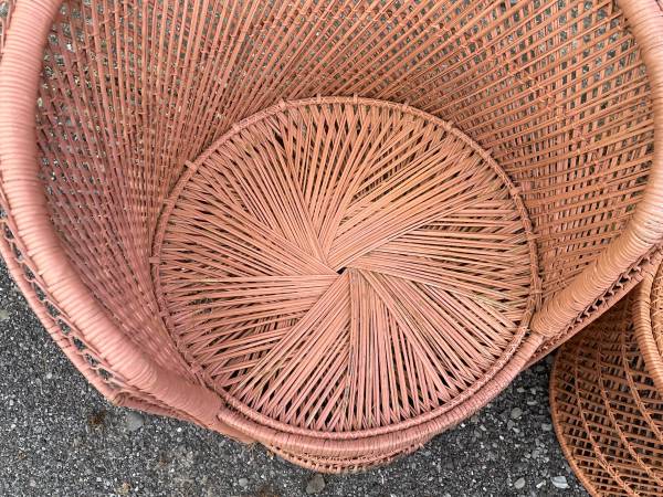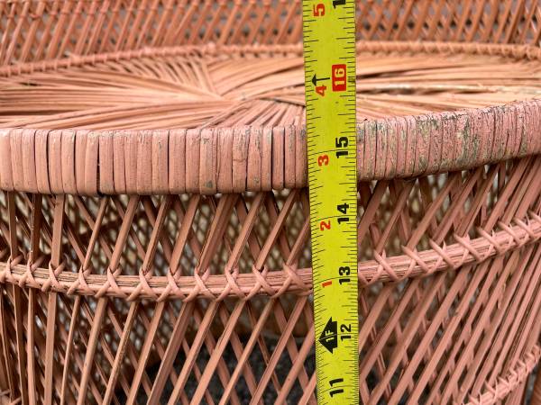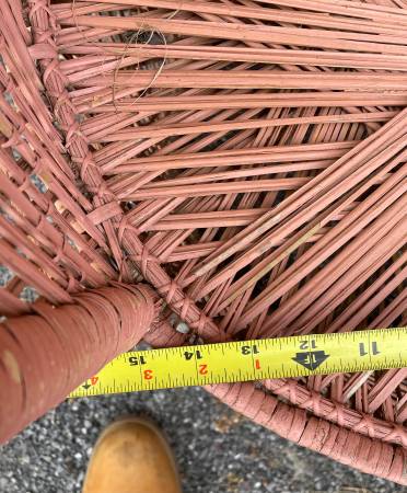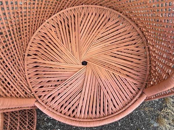 Unique 3 piece barrel back hand woven wicker chairs and table set! ALL $45 FIRM! About 15” between arms!!!