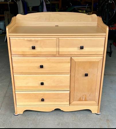 Dresser with changing table top. A great piece for your nursery or kid's room. Excellent condition, very sturdy. Dimensions = 44" tall, 40" wide, 20" deep. You pick up in Rush. Asking $75.