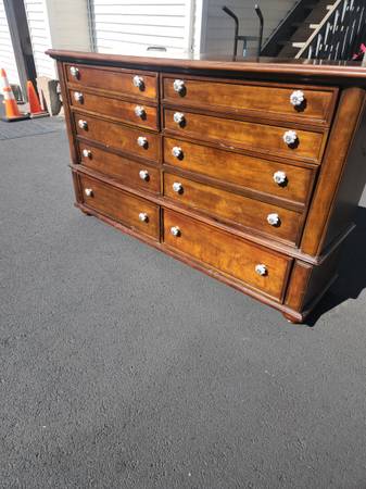 For sale is this absolutely awesome Long modern dresser! This outstanding solid wooden dresser has beautiful features along with adorable drawer pulls. Measurements: 40 tall x 68 long x 18 wide...