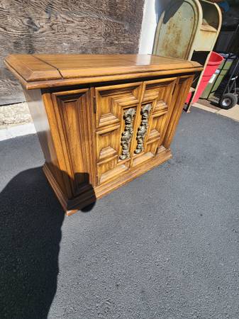 For sale is this absolutely stunning Mid-Century Modern Buffet! This outstanding piece/cart is on wheels for easy mobility. The top opens for more top/Serving room! Lots of storage inside as well!