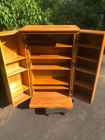 PRICE REDUCED !!! This is a solid all wood storage cabinet with adjustable interior shelves. $40 or BO !!