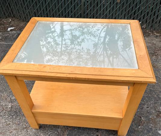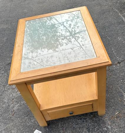 Nightstand/End Table with glass, shelf and drawer H 23” L 26” W21” Excellent condition