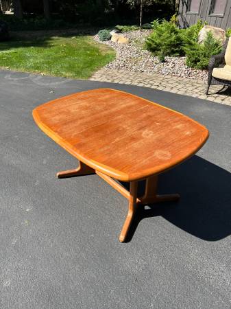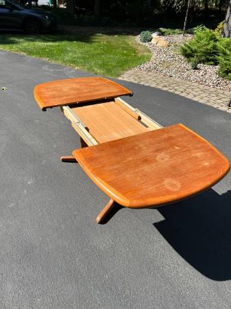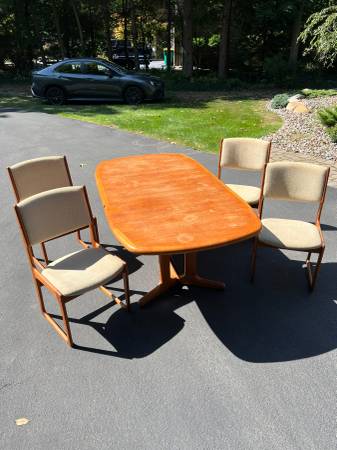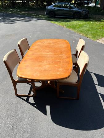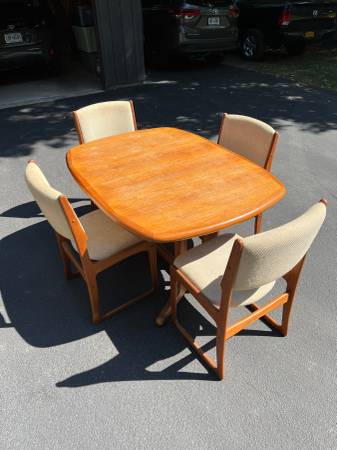 • Danish teak dining table with pull out extension leave with four (4) matching chairs