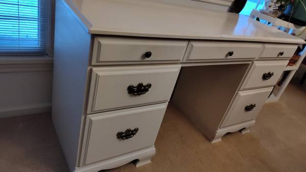 Nice quality desk with 7 drawers. Solid wood construction. Good condition. Desk top is 54 x 20 inches. 30 inches high. $150 or best offer