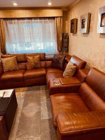 Natuzzi Genuine Leather Reclining Sectional – 2 Power Recliners + Cup Holders + Remote Storage