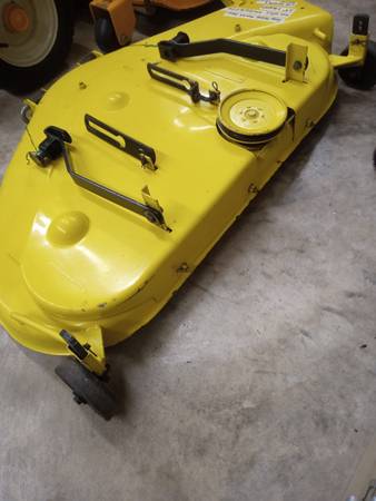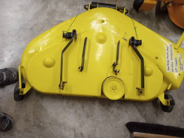 Vintage 39" mower deck for John Deere 110/112, 210, 212, 214 and 216 series tractors from the early 70's. Very hard to find due to most decks being worn out from use. This deck has had some use, but was restored, used one season and then kept on the shelf, in a heated building for many years.
