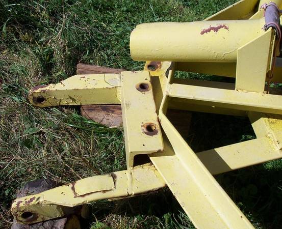 This snowplow is built like a tank and probably could be mounted on a dozer to push dirt, along with the attached "A" frame this was originally installed (new) on a 1962 international farm tractor. The plow is 6 feet 6 inches wide, 24 inches high and the blade is 1/4 inch thick...this heavy duty older style plow and frame are well made of heavy: angle iron, pins and bolts.. see the 2nd last pic which shows the 1 inch diameter mounting holes the inside width opening is 16.5 inches and to the outside is 19 inches...several years ago this plow and frame were completely sand blasted and a yellowish/green zinc chromate industrial rust preventive paint applied which has kept it in overall good condition...see the close up detailed pics for more info/condition...its estimated weight is appox. 500-700 lbs so ideally you could load it on a trailer with a ramp as you could then winch it up onto it as there is no machinery to help load it...NOTE this must be done in dry weather as it is stored on a off road backyard grassy area.... call show contact info