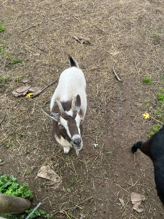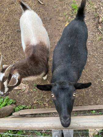Three nanny Nigerian Dwarf goats friendly great with kids come with all I have hoof trimmers milking and trim stand all hay that’s left two wire spools for them to play on ammonium chloride pellets for snacks first of August had there yearly CDT shot favorite snack Fig Newton love to be scratched favorite food pine needles names Athena white and brown. Petunia red brown moon spot on left side Noel born December 10 2023