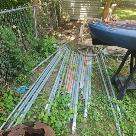 100' chain link and all the poles and pipes and hardware. Put up last year replacing with stockade. 1 small gate also.